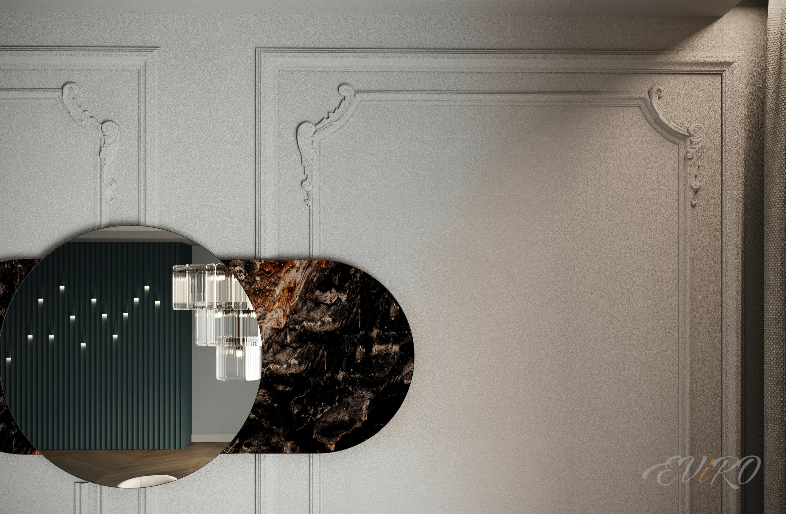 Парные декоративные углы EViRO Модель 1.52.290 и 1.52.293 - гипсовый декор для отделки стен, потолков, дверей, окон, зеркал и т.д. С помощью такого гипсового декора можно сделать свой интерьер уникальным и индивидуальным. Декоративные углы из гипса легко поддаются окрашиванию тем самым идеально подойдут под любую цветовую гамму в помещении. Отлично смотрится такая лепнина из гипса в спальне, гостиной, кабинете, детской комнате, а также в различного рода помещениях общественного назначения. Купить гипсовые декоративные элементы можно онлайн или оформив заказ по телефонам, которые указаны на сайте производителя.