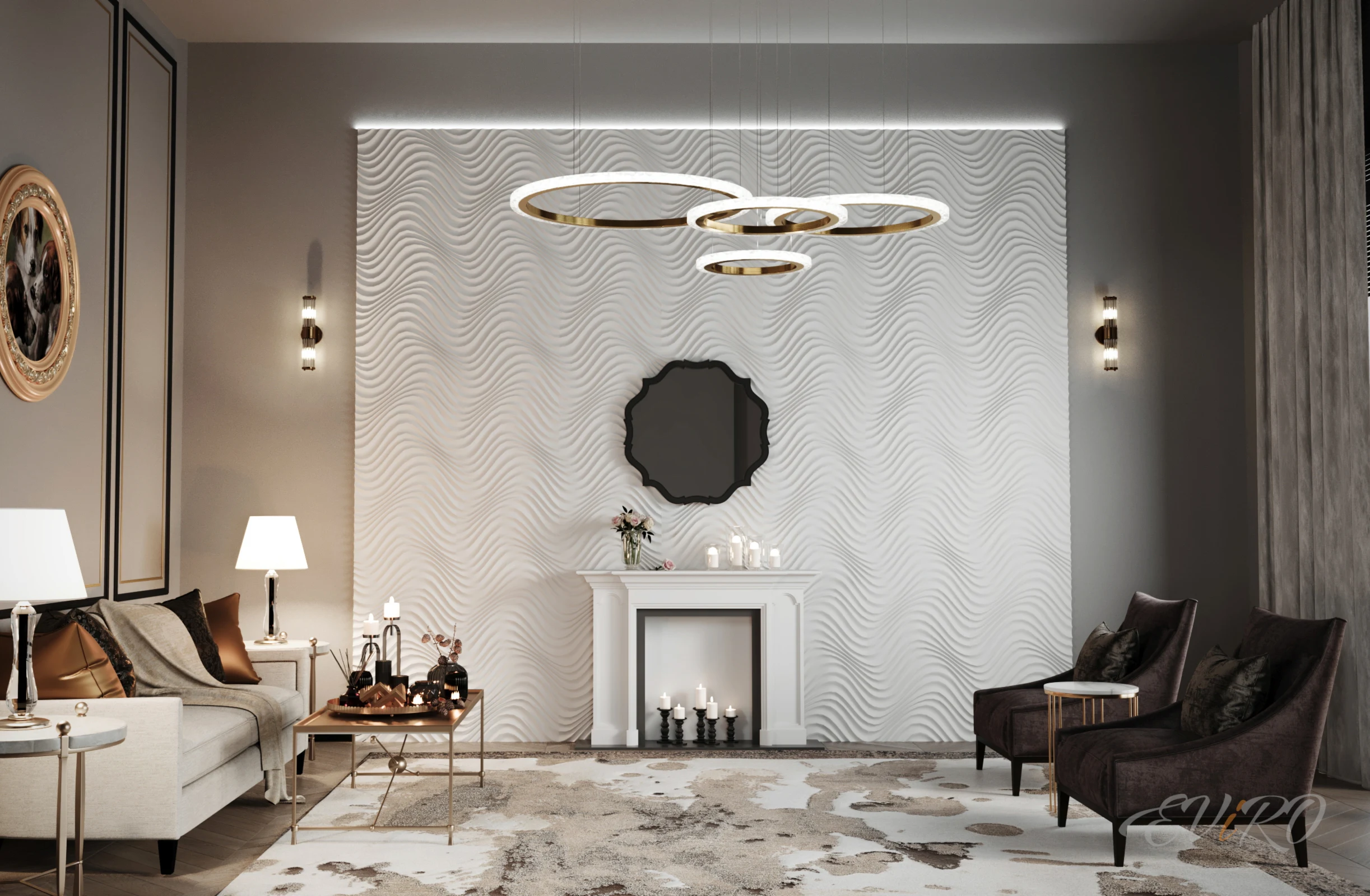 Вариант 2. Оформление зоны гостиной 3D панелями