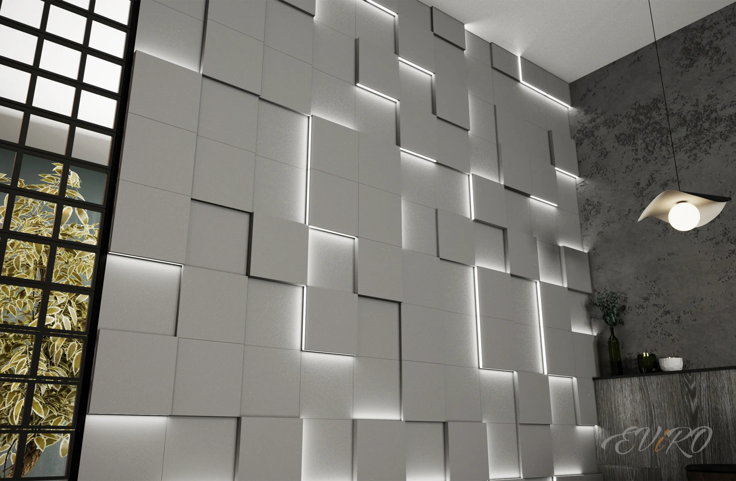 Световая гипсовая 3D панель EViRO Световые квадраты